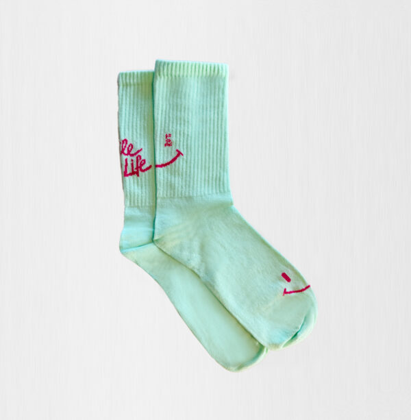 Diese Socken sorgen für positive Vibes und zaubern dir ein Lächeln ins Gesicht! Der fröhliche «Smile to Life» Schriftzug sticht in 3 Farben auf der Rückseite, auf der anderen Seite der Smile 🙂 – ein kleines Detail, das dir und deinen Mitmenschen sofort gute Laune bringt.